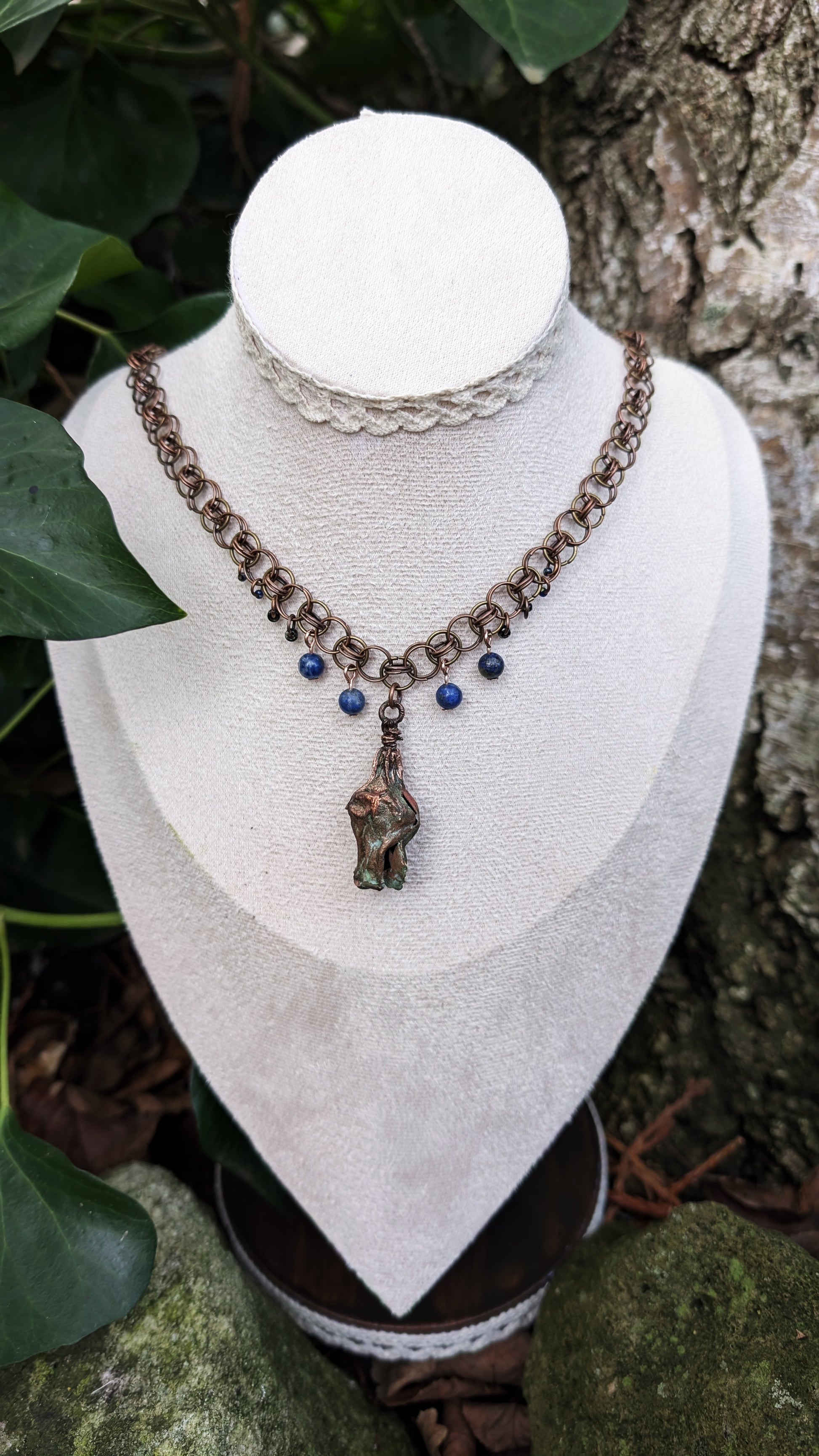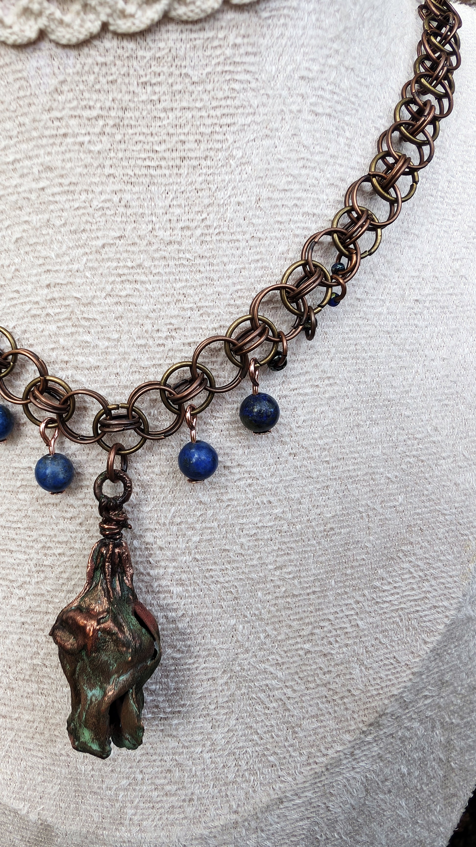I hover, heartless yet burning, pulled toward the copper petals that glow with a fire I cannot touch. Blue stones glint like shards of sky, and I reach, craving the brush of something real — but my fingers sink through nothing, through emptiness that tastes of memory and regret.