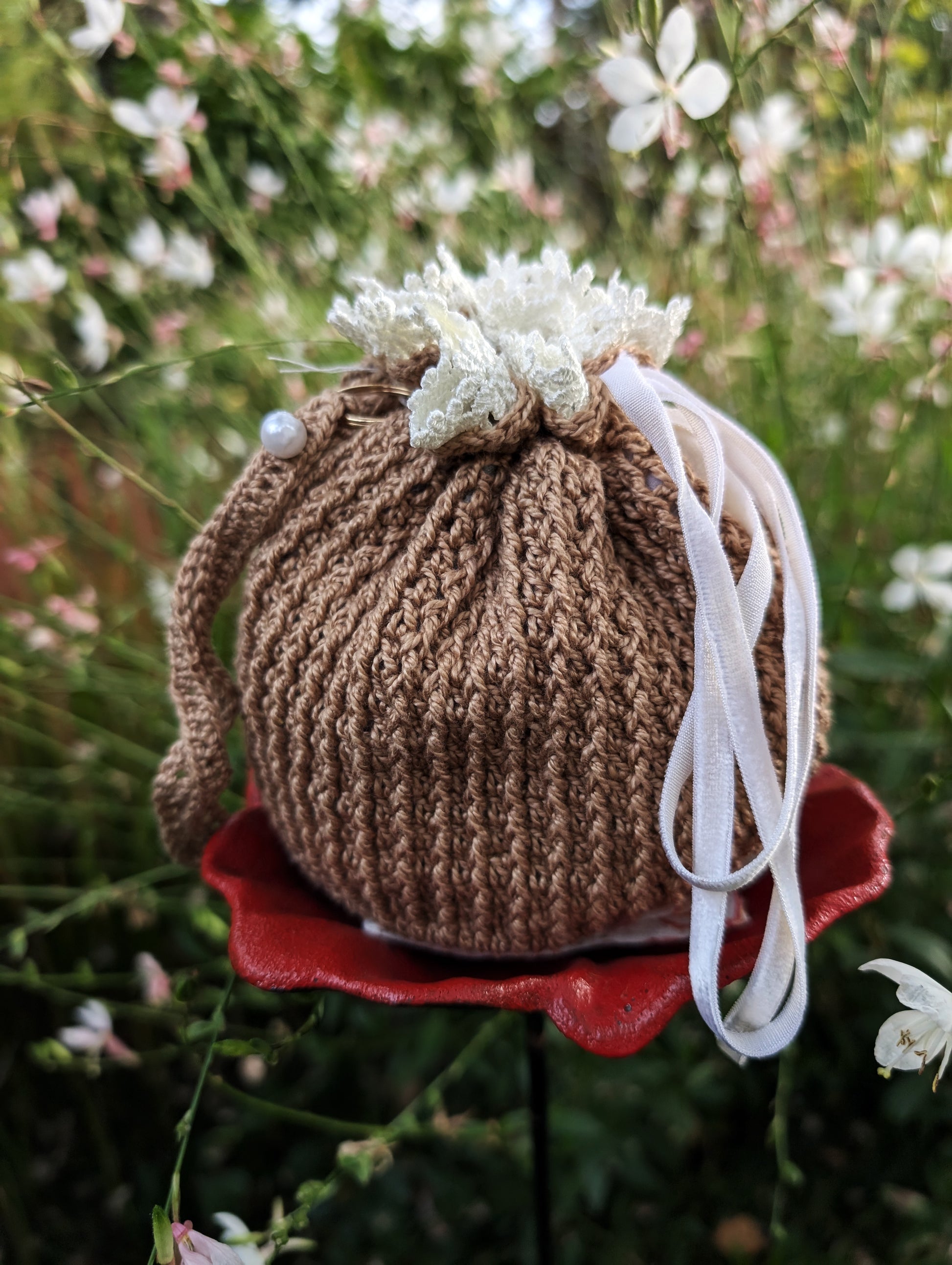 This satchel carries more than scent and satin. It remembers letters never sent, rendezvous in lamp-lit parlours, and gloves held too tightly in wringing hands. Threads of lace wind like secrets through its form, each stitch deliberate, delicate, and knowing.