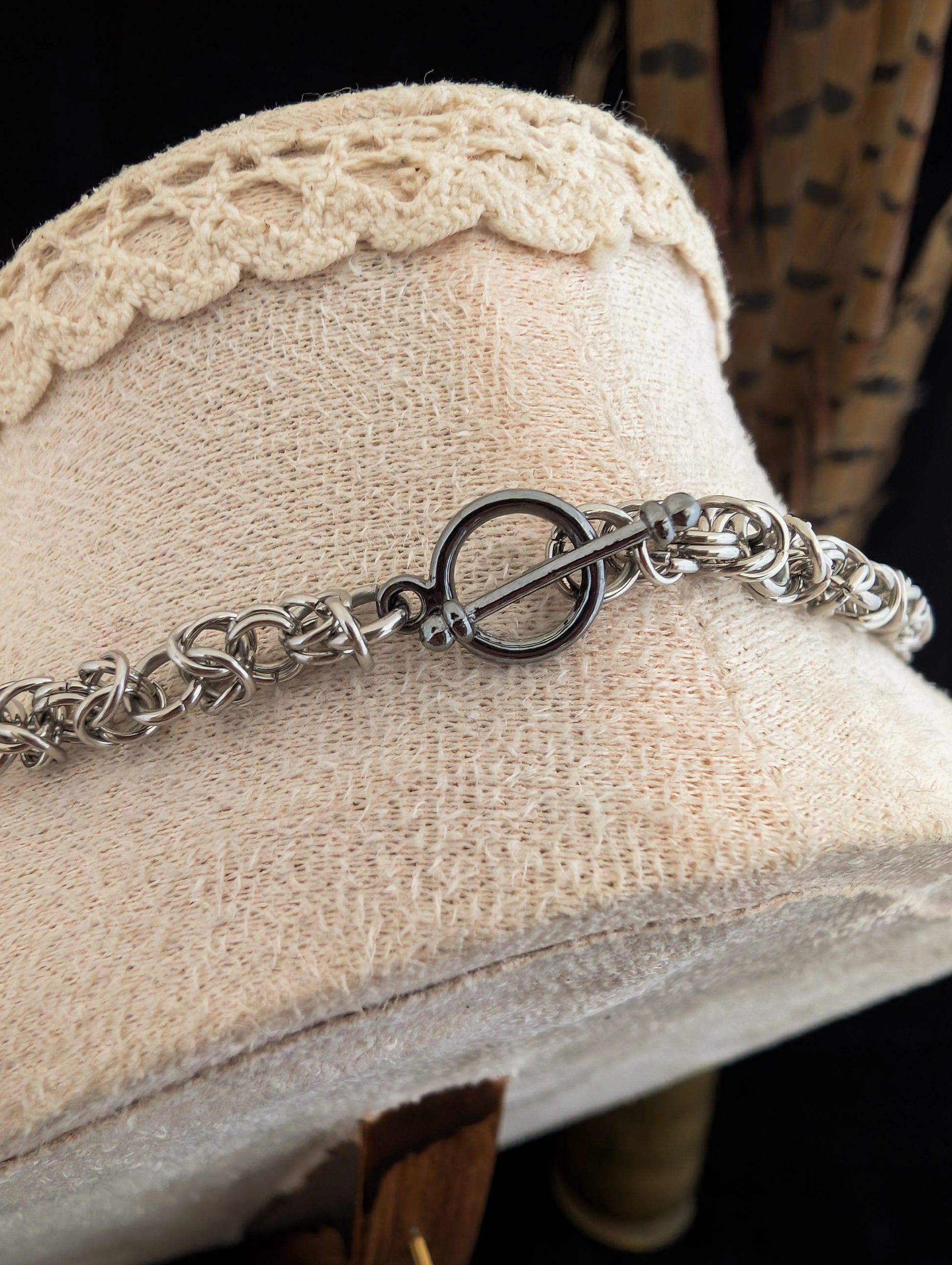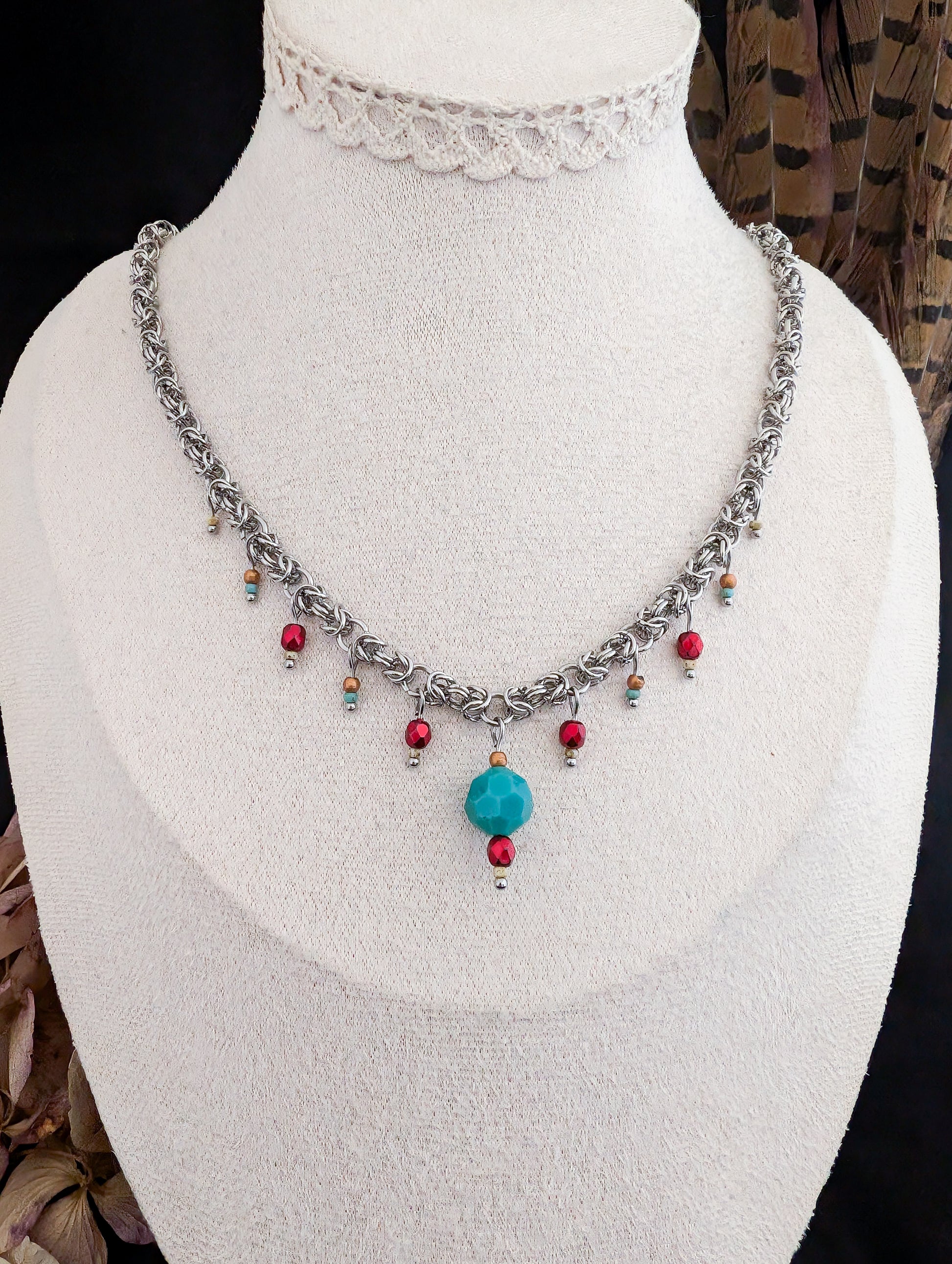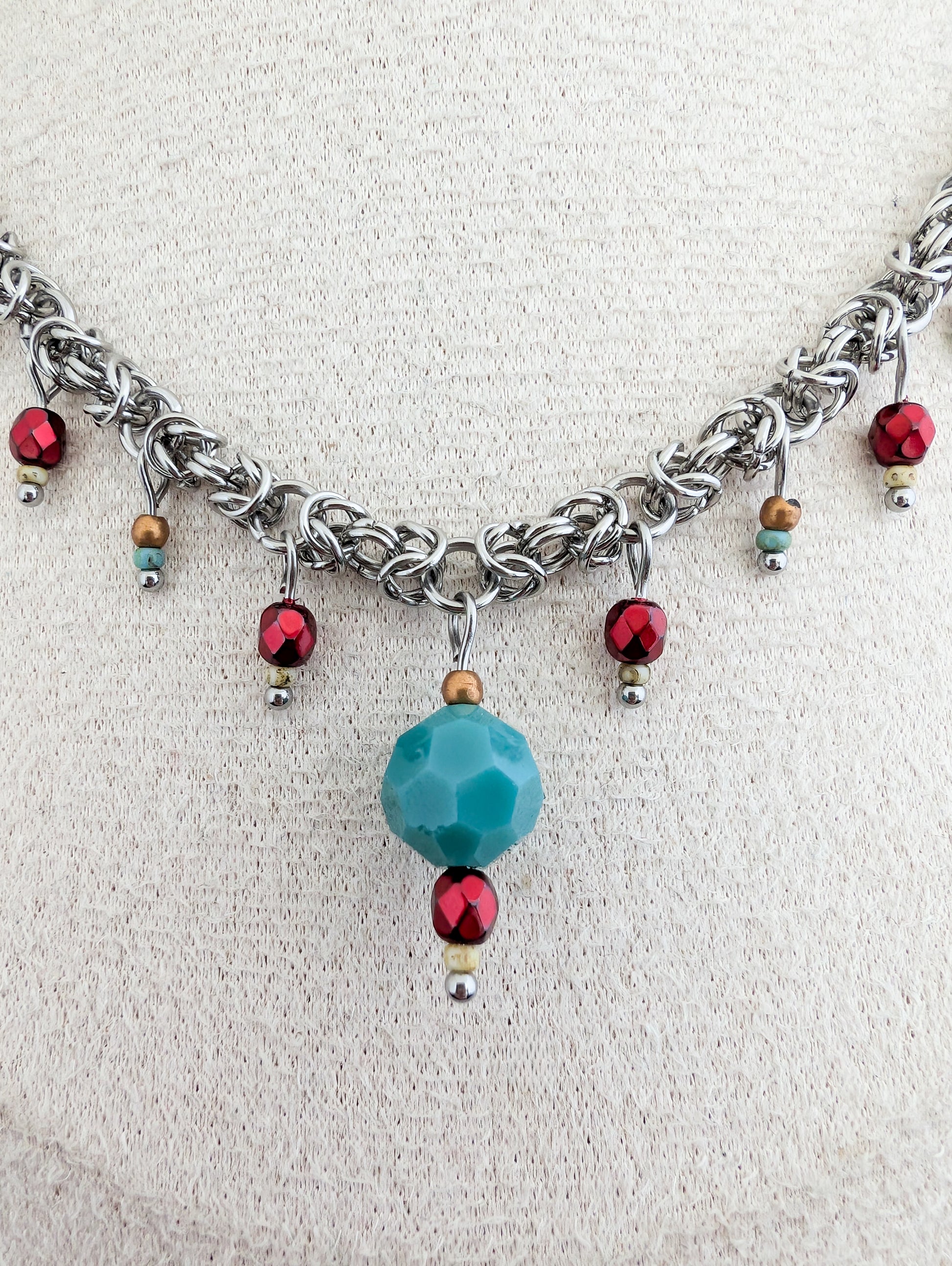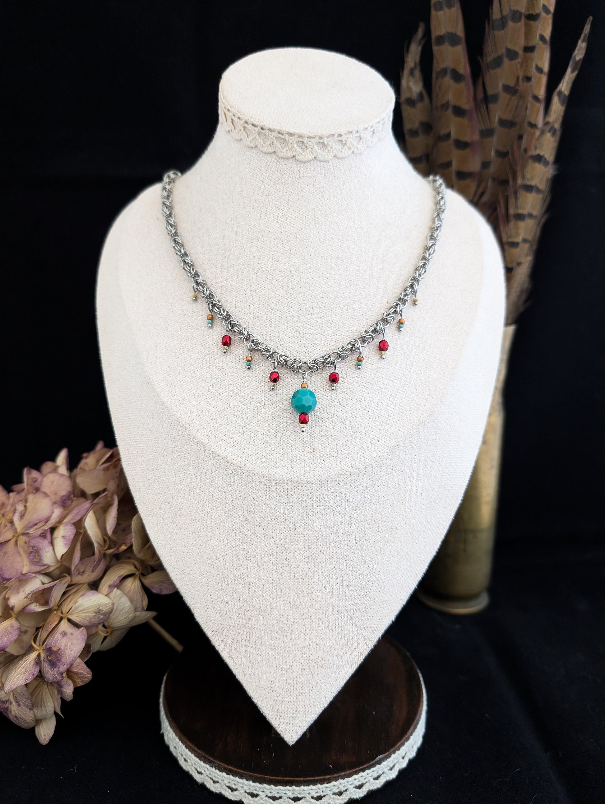Edmund stops at the edge of the table and folds his gloves once, then again. “I have,” he replies, his gaze flicking briefly to the red drops along the chain as she sets her cup down. They move with her wrist, with her breath. Porcelain clinks softly nearby. No one looks at them directly.