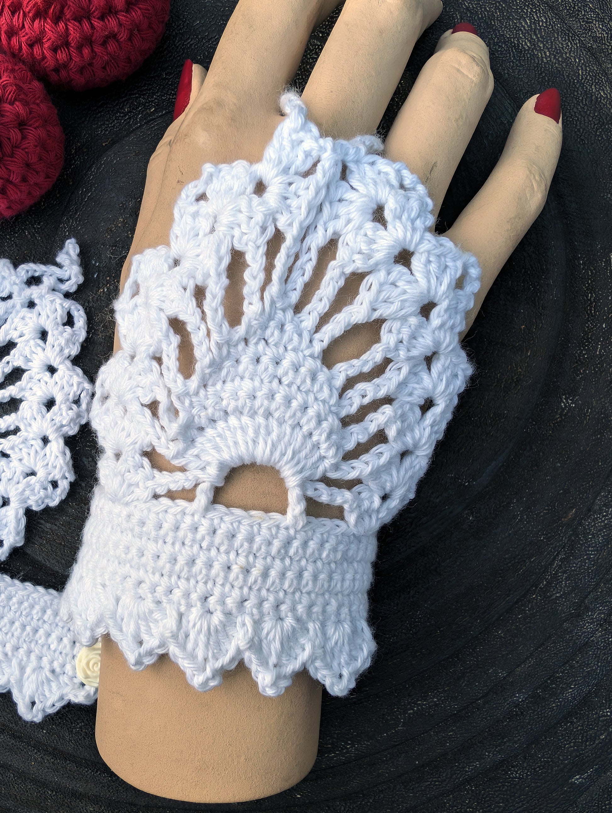 Lace carries stories, woven in delicate threads and passed through time like whispers on the wind. A fragment of a bygone era, a memory held in fabric, a touch of something both familiar and elusive. These wrist cuffs feel like they belong in a forgotten chest, wrapped in silk alongside old love letters and pressed flowers—keepsakes from moonlit waltzes and stolen moments.