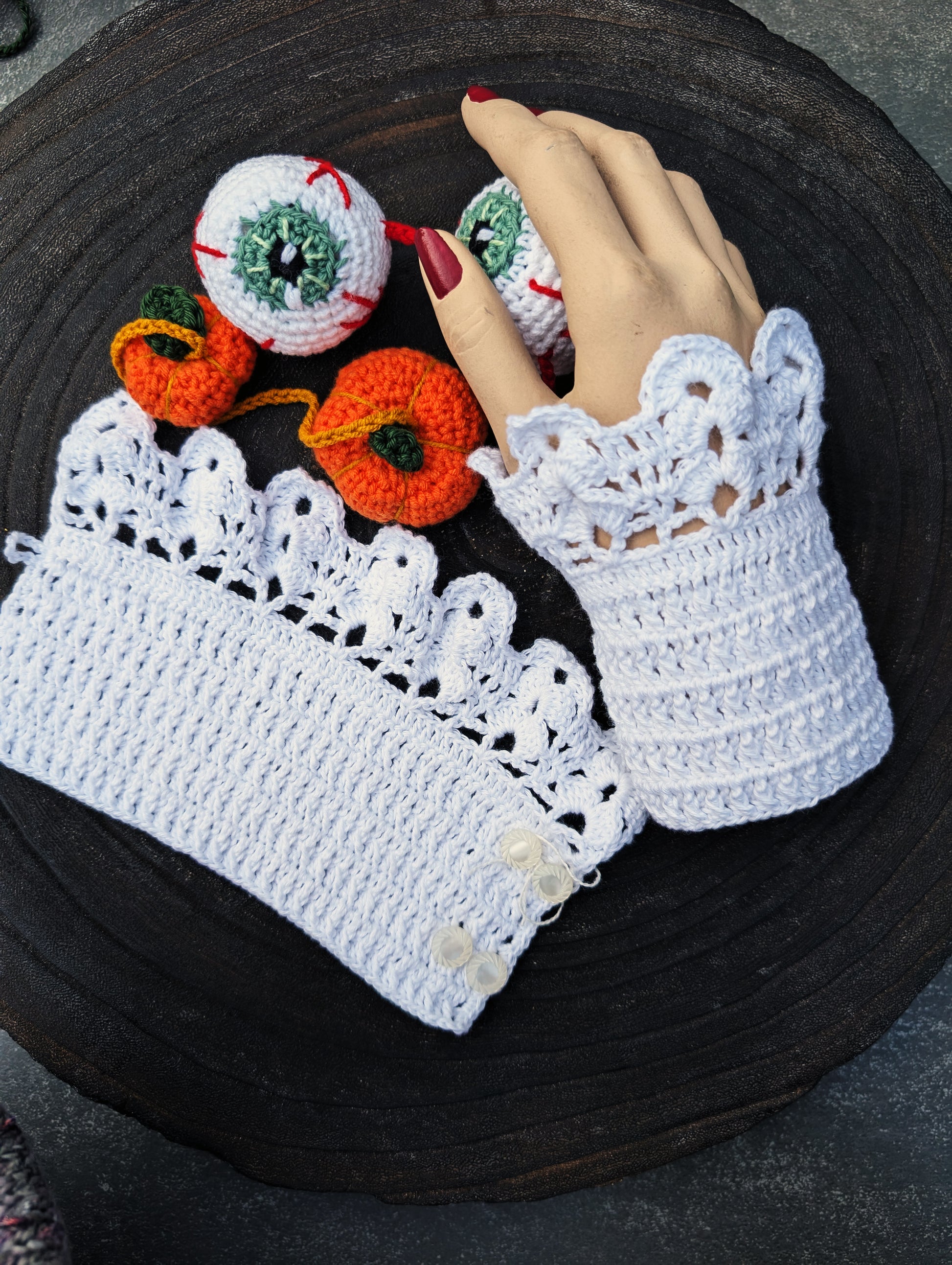 Lace carries stories, woven in delicate threads and passed through time like whispers on the wind. A fragment of a bygone era, a memory held in fabric, a touch of something both familiar and elusive. These wrist cuffs feel like they belong in a forgotten chest, wrapped in silk alongside old love letters and pressed flowers—keepsakes from moonlit waltzes and stolen moments.