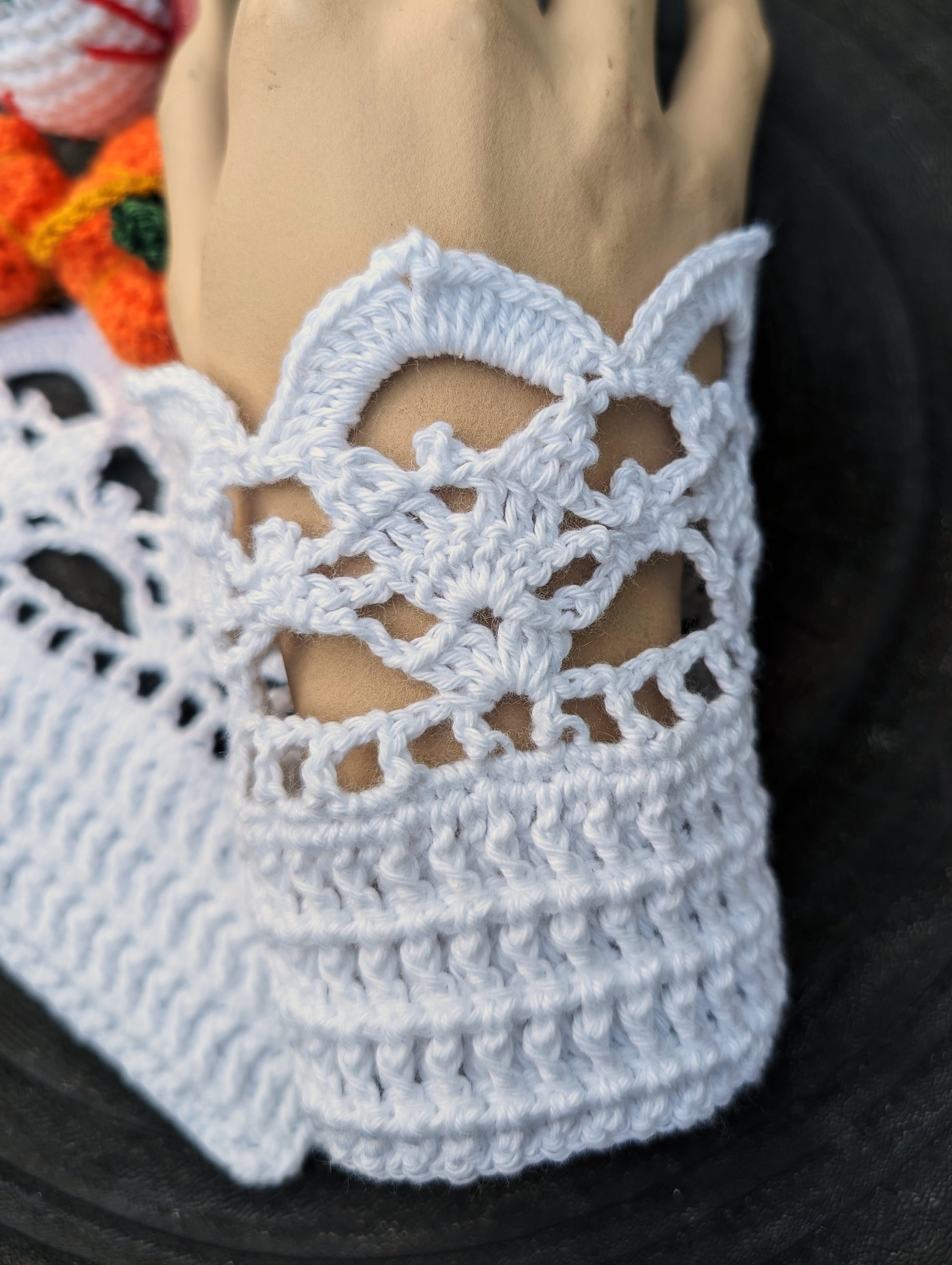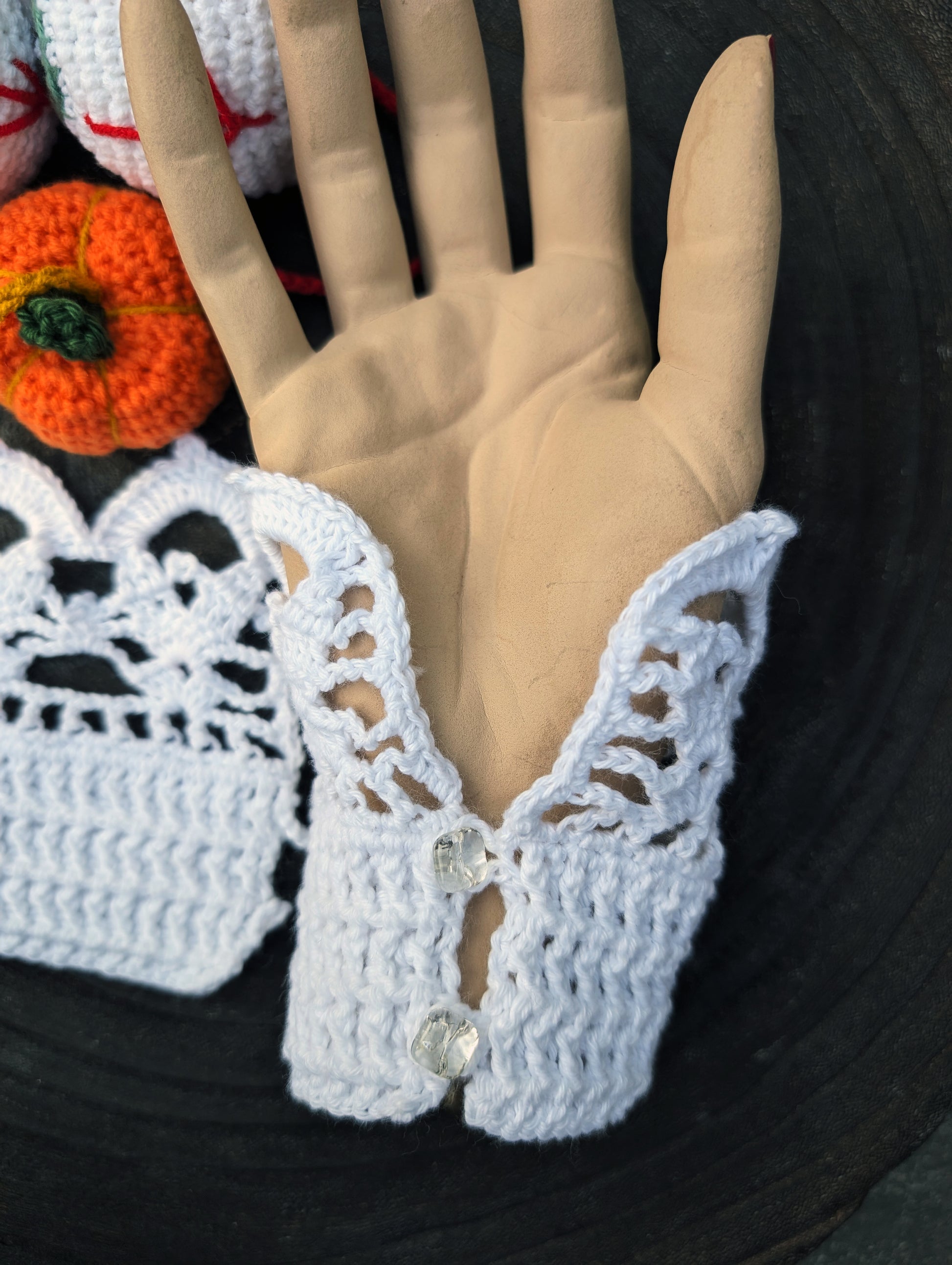 Lace carries stories, woven in delicate threads and passed through time like whispers on the wind. A fragment of a bygone era, a memory held in fabric, a touch of something both familiar and elusive. These wrist cuffs feel like they belong in a forgotten chest, wrapped in silk alongside old love letters and pressed flowers—keepsakes from moonlit waltzes and stolen moments.